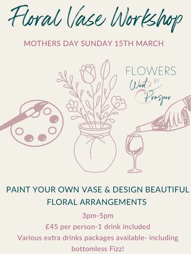 Join us on Sunday 15th March for a child friendly and delightful morning of painting your own vase and then creating a stunning display of flowers within.