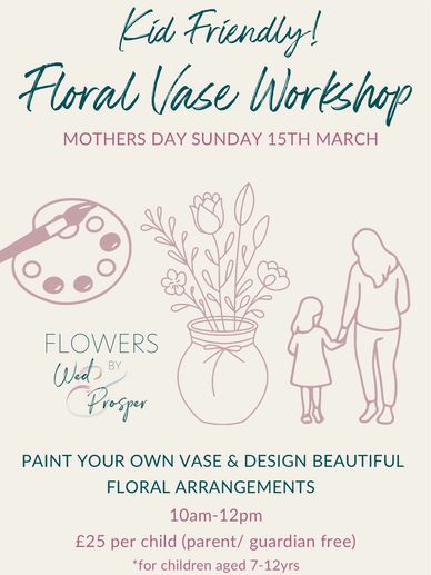 Join us for a child friendly and delightful morning of painting your own vase and then creating a stunning display of flowers within.